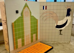 Die Teammitglieder bekamen eine Aufgabe gestellt, die sich aus drei Modulen zusammensetzte: Die linke Wand hatten sie mit dem Motiv der Kathedrale von Lille zu gestalten. Diese musste hervorgehoben dargestellt werden, außerdem installierten sie seitlich eine indirekte Beleuchtung. Die rechte Wand sollte mit dem Gallischen Hahn gefliest werden – dem Nationalsymbol Frankreichs – wie auch mit der französischen Trikolore. Das dritte Modul, der Boden, bestand aus einer Estrichkonstruktion mit Fußbodentemperierung und einem Thermostat, das abschließend an das linke Wandmodul eingebaut werden musste. Kantenabschlüsse aus Edelstahlprofilen mit angepassten Ecken werteten das Gesamtprojekt zusätzlich auf. Die Projektskizzen hatte übrigens Bundestrainer Gerald Weihe gezeichnet.
