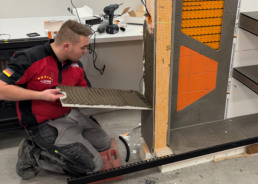 „Eine Herausforderung stellte die unterschiedliche Dicke der verwendeten Fliesen dar, um eine ebene Fläche zu erreichen“, betont der Bundestrainer. Dass statt klassischer Silikonfugen die Schlüter-DILEX-Dehnfugenprofile verwendet werden mussten, forderte alle Teammitglieder heraus. „Diesen Aufgabenpunkt haben sie unterschätzt und daher viel Zeit investieren müssen.“