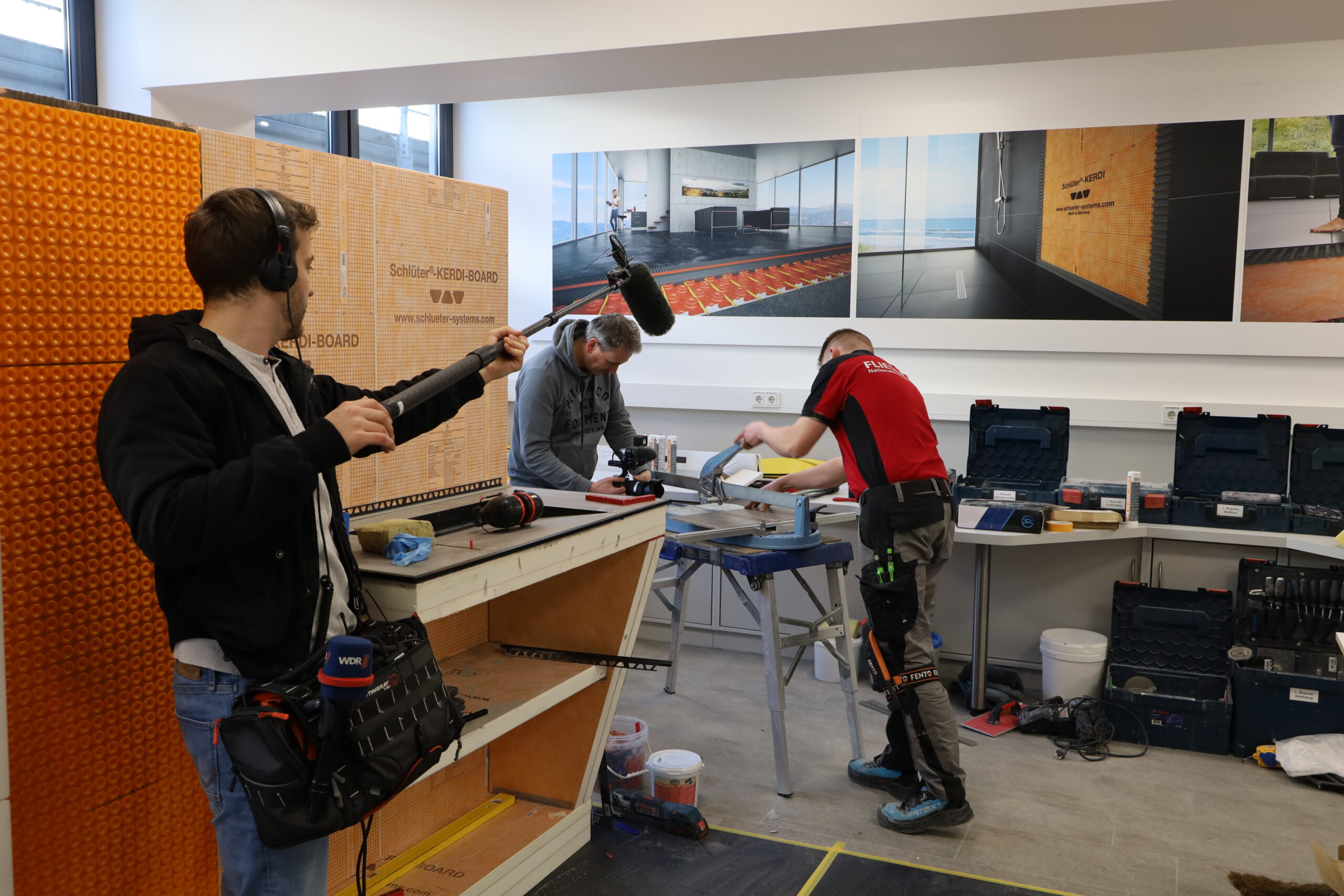 „Eine Herausforderung stellte die unterschiedliche Dicke der verwendeten Fliesen dar, um eine ebene Fläche zu erreichen“, betont der Bundestrainer. Dass statt klassischer Silikonfugen die Schlüter-DILEX-Dehnfugenprofile verwendet werden mussten, forderte alle Teammitglieder heraus. „Diesen Aufgabenpunkt haben sie unterschätzt und daher viel Zeit investieren müssen.“