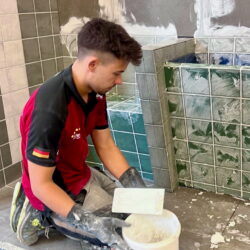 Luis Brauner, der deutsche Qualifikant für die am 10. September beginnenden EuroSkills 2025, hat in der letzten Augustwoche sein letztes Vorbereitungstraining absolviert – gemeinsam mit Luca Kühne, dem Ersatzkandidaten. Das Training fand bei ARDEX in Witten/NRW statt, einem der Teampartner der Fliesen-Nationalmannschaft. Betreut wurde das „EM-Duo“ von Andreas Beyer.