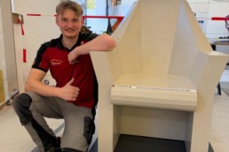 Das Training in die Woche zu legen, in der die zweite Ausgabe des Brandenburger Fliesenlegertags fiel, war eine bewusste Entscheidung – der Auftritt der Fliesen-Nationalmannschaft wurde zu einem Höhepunkt der wichtigsten regionalen Branchenveranstaltung. Mehr als 150 Gäste kamen in den Lehrbauhof, gut fünfzig Austeller informierten die Besucher über ihre Produkte und Dienstleistungen, darunter viele Partner des Fachverbands Fliesen und Naturstein im Zentralverband des Deutschen Baugewerbes und seiner Fliesen-Nationalmannschaft. Auf der Bühne hielten Experten wie FFN-Vorstandsmitglied Markus Ramrath Vorträge zu unterschiedlichen Fachthemen. Veranstalter des Brandenburger Fliesentags war wieder die Landesinnung, die mit diesem Event das regionale Branchennetzwerk stärken möchte.